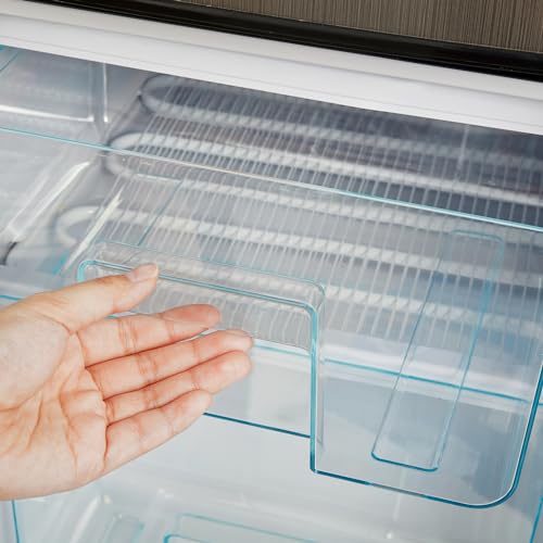 2. Combining exquisite design with practical functions:Brushed gray silver door trim brings a modern aesthetic to your kitchen or office. The plexiglass 2-layer storage shelf on the door allows you to place drinks or other frequently used items for easy access.