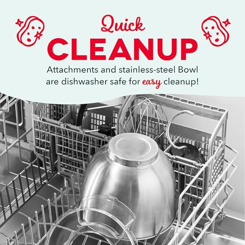 EASY CLEANUP: Bowl & Attachments are dishwasher safe. Included Splash Guard for keeping the counter tidy!