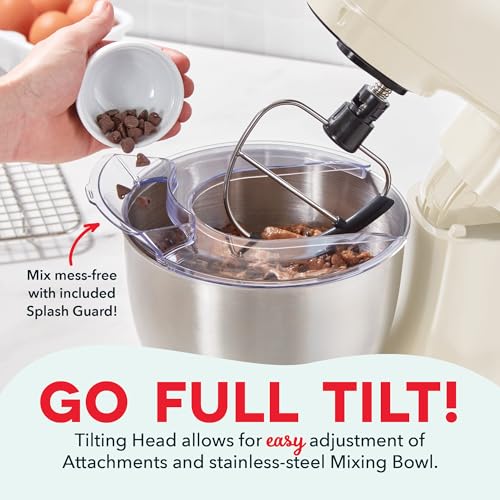 DASH Tilt-Head 3.5qt Stand Mixer 12 Speeds with Paddle, Dough Hook, and Whisk Attaachments – Cream