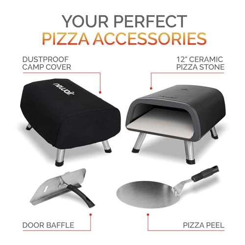 [ESSENTIAL PIZZA-MAKING ACCESSORIES] – These invaluable additions are a door baffle, a pizza peel, a 12″ ceramic pizza stone, and a dustproof camp cover. The door baffle serves to retain heat during preheating. The pizza peel effortlessly transfers your uncooked pizza onto the searing hot ceramic pizza stone. When transferring or not in use, the camp cover prevents dust from settling on your electric pizza oven.