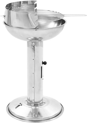 Pedestal Charcoal BBQ Grill Stainless Steel,Kitchen & Dining ,Kitchen Appliances ,Outdoor Grills—This classic pedestal charcoal BBQ grill is ideal for grilling and broiling for parties in the garden. Made of high-quality stainless steel with a polished finish, the barbecue grill has a sturdy and durable construction. With a chrome-plated grilling grid and warming grid, this BBQ grill provides ample space for preparing food. You can easily adjust the grilling grid height to make the best use of the charcoal’s heat. The windshield block the wind for better heat retention and faster cooking. The air vent allows you to freely adjust the airflow to the charcoal, while the ash collector makes the cleaning easy. Thanks to the compact design, the outdoor BBQ grill is easy to transport.