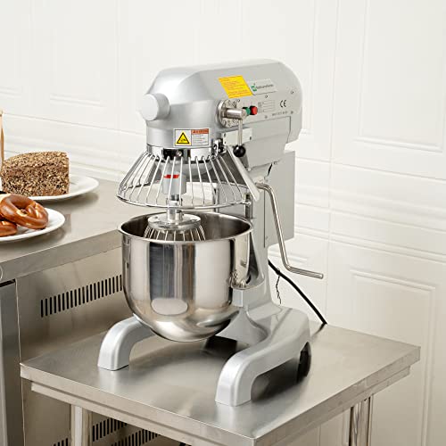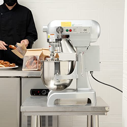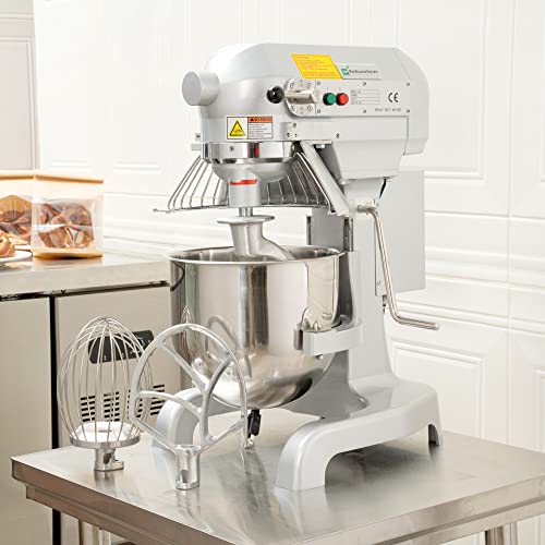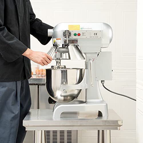 HEAVY-DUTY CONSTRUCTION: Made from cast aluminum and stainless steel, this planetary mixer is long-lasting and durable for high-volume use. Rubber feet help keep the mixer stable during operation.