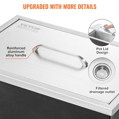 Specification: VEVOR Drop in Ice Chest, 20″ L x 14″ W x 12″ H Stainless Steel Ice Cooler, Commercial Ice Bin with Cover, 40 qt Outdoor Kitchen Ice Bar, Drain-Pipe and Drain Plug Included, for Cold Wine Beer