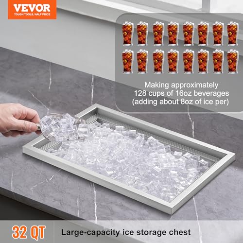 VEVOR Drop in Ice Chest, 20″ L x 14″ W x 12″ H Stainless Steel Ice Cooler, Commercial Ice Bin with Cover, 40 qt Outdoor Kitchen Ice Bar, Drain-Pipe and Drain Plug Included, for Cold Wine Beer